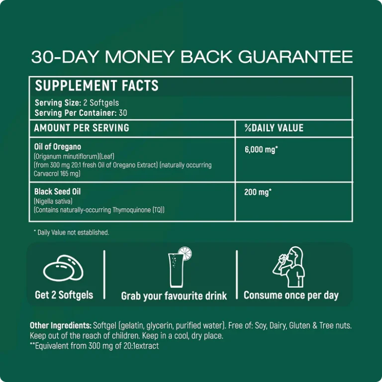 High potency oregano oil and black seed oil softgels designed to support gut comfort reduce bloating and promote healthy digestion from within
